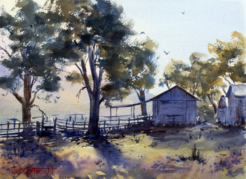 Watercolour landscape painting of Australian farm scene at Quirindi
